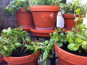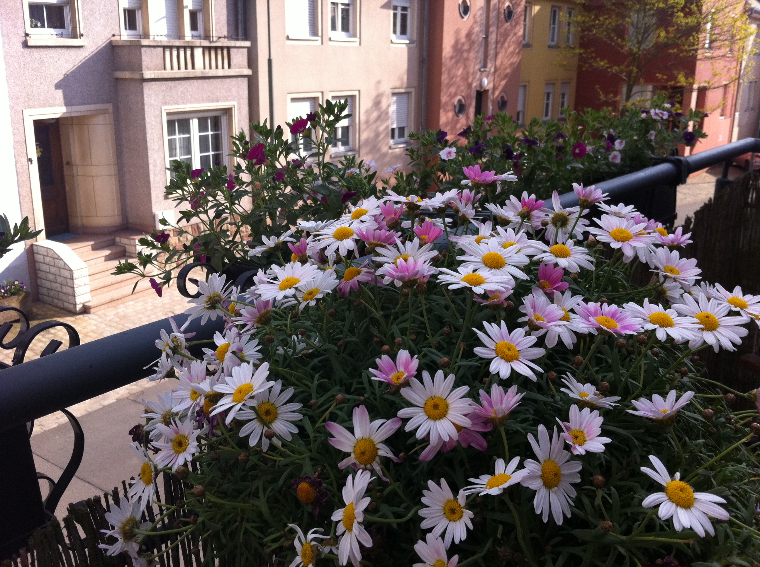 - Mrs J had the idea today that working with her hands would provide nice relaxation. Mrs J doesn’t actually have a garden. Well, technically she has about 4 sqm of garden between the parking space and the home office door. But Mr J is pretty much in charge of cutting down the vegetation that lives there a couple times a year. Mrs J does however have a balcony, with a few boxes for flowers and a few pots for some herbs. So, after a fairly early morning trip to the garden center (to avoid the Saturday crowds) Mrs J got stuck into planting petunias. Nice and dirty… And some other flowers too that Mrs J has already forgotten the name of. But they look nice and friendly!