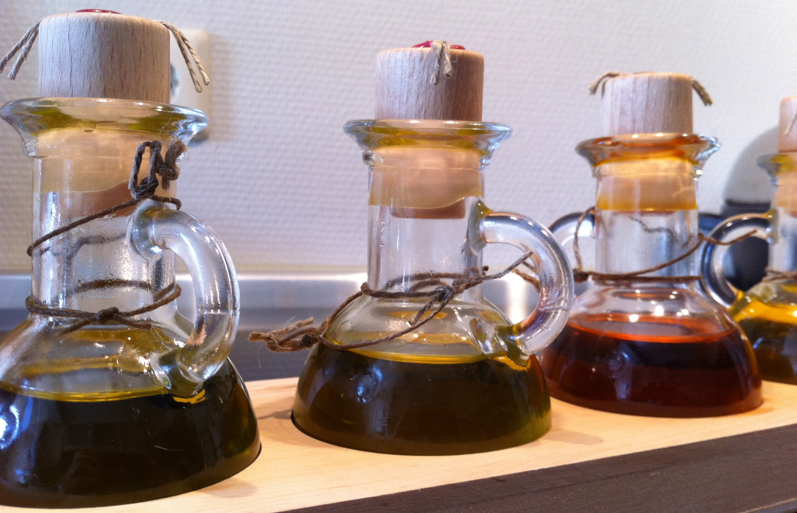 She did however have some time to take a picture of the olive oils that were the stars of the oil-tasting (which replaced the first course). To be recommended, it was a lot of fun!