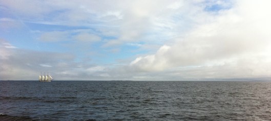 It turns out there was a meet of a few classic ships in town. Mrs J’s great grandfather was a pilot guide (now we’re talking serious 19frozetodeath and probably even 18diedofplague). In any case, they didn’t have motorized vessels and they used to stay out on an island to save time when meeting the ships that needed piloting into the harbour. Very impressive stuff when you think about it. If you squint really hard you can see the island in the middle of the photo. If you can’t see the ship to begin with, don’t bother squinting.
