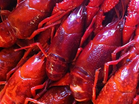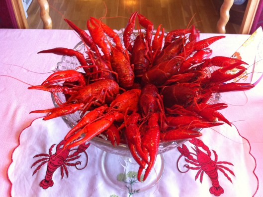 Crayfish, in Mrs J’s Scando tradition, are cooked with dill and salt and served cold (or room temperature). It’s a traditional August party, because in the olden days the season didn’t start until a certain date in August. Nowadays you can get them just about any time, but where’s the fun in that?