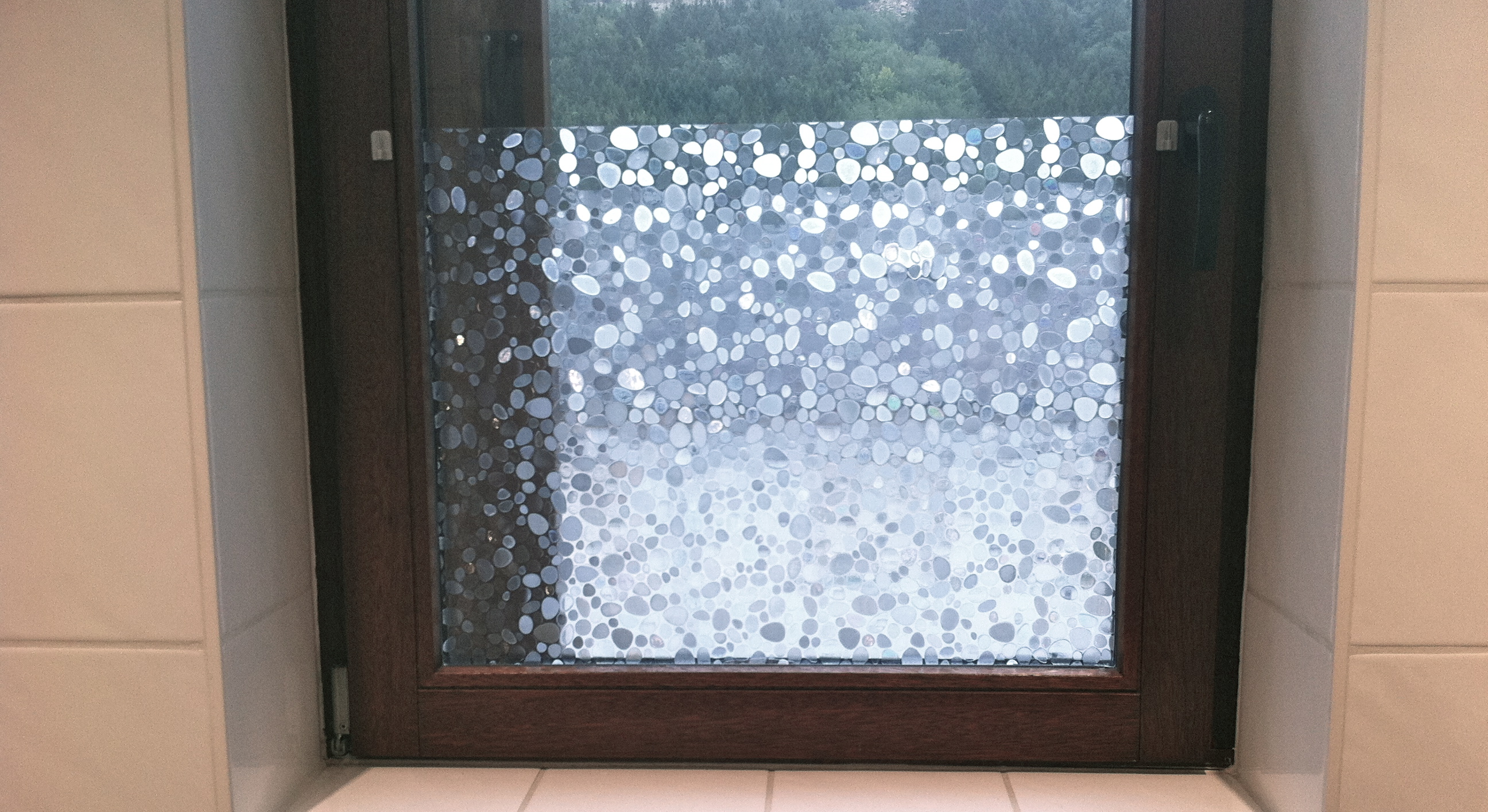 The bathroom window got a stronger pattern.