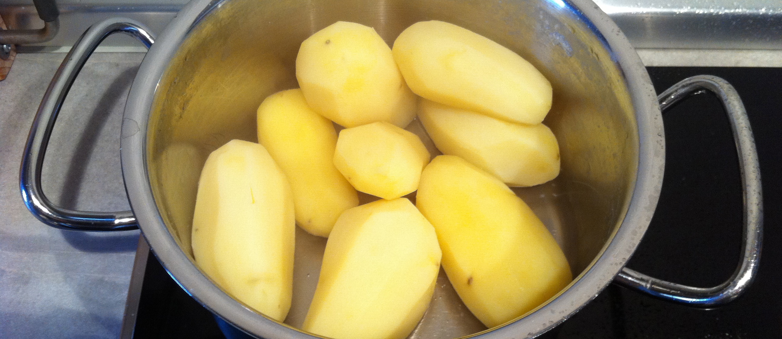 Let’s blame the potatoes, shall we? Peeling potatoes numbs the mind. And we have to start with cooking peeled potatoes in salted water.