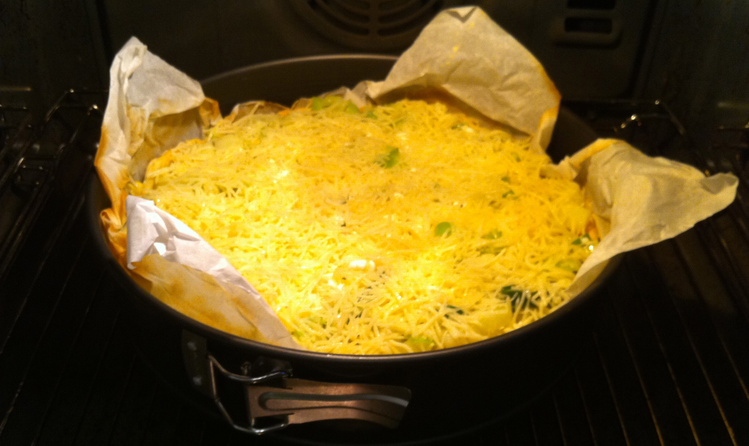 By the way, there’s a very good reason why Mrs J hasn’t given you any volumes yet. Because it really is up to your individual taste. Mrs J used 200 grams of fish and two whole leeks for a 28 cm pie with three fairly large potatoes. But it will work fine with less of either, if you like it that way. Just adjust cooking time accordingly.