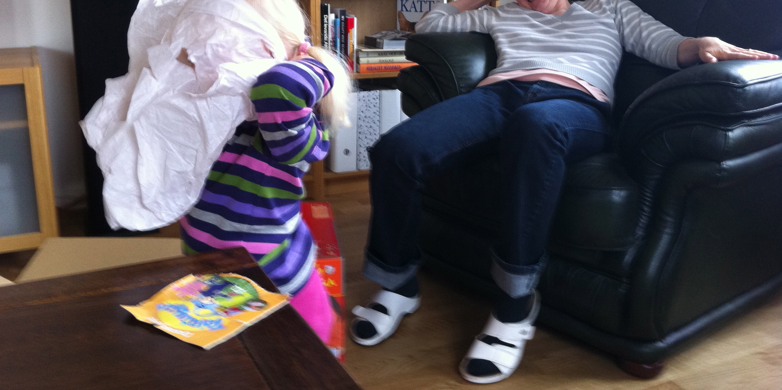 While this conversation really happened, it’s obviously a running gag. Parents of small children, like Mrs J’s sister, notoriously have no time for themselves.