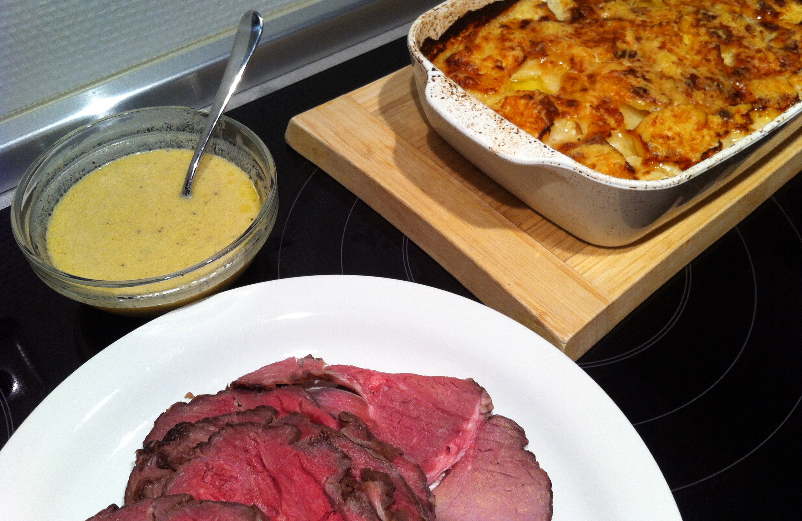 Day 3: Take steak out of the oven. Don’t panic, it’s supposed to look like that. If you feel concerned about the low temperature (if you have a monster steak it may need another few hours) check with a thermometer – 65-68°C and you have nothing to worry about. Mrs J likes hers to be even a little less well done.