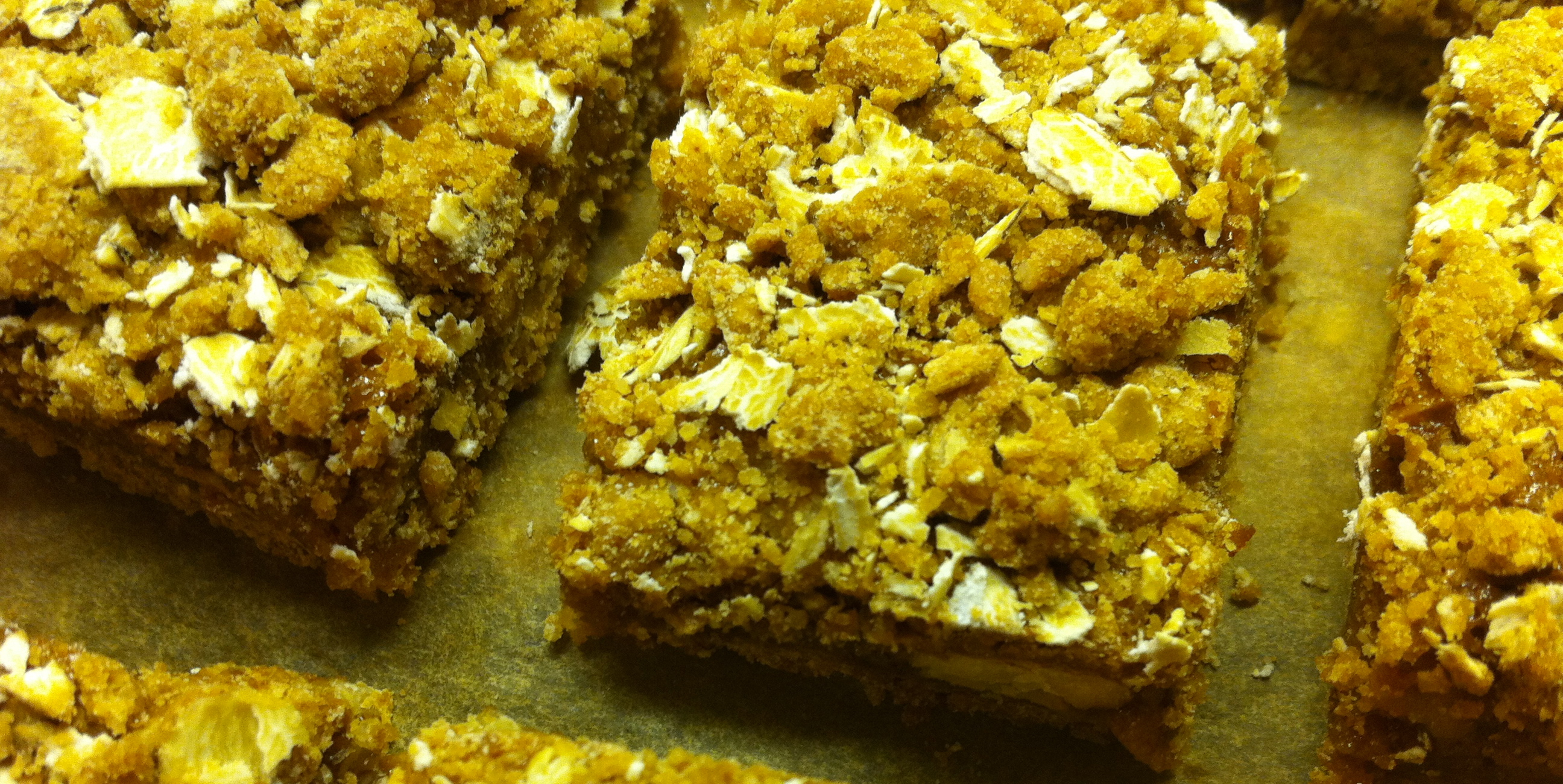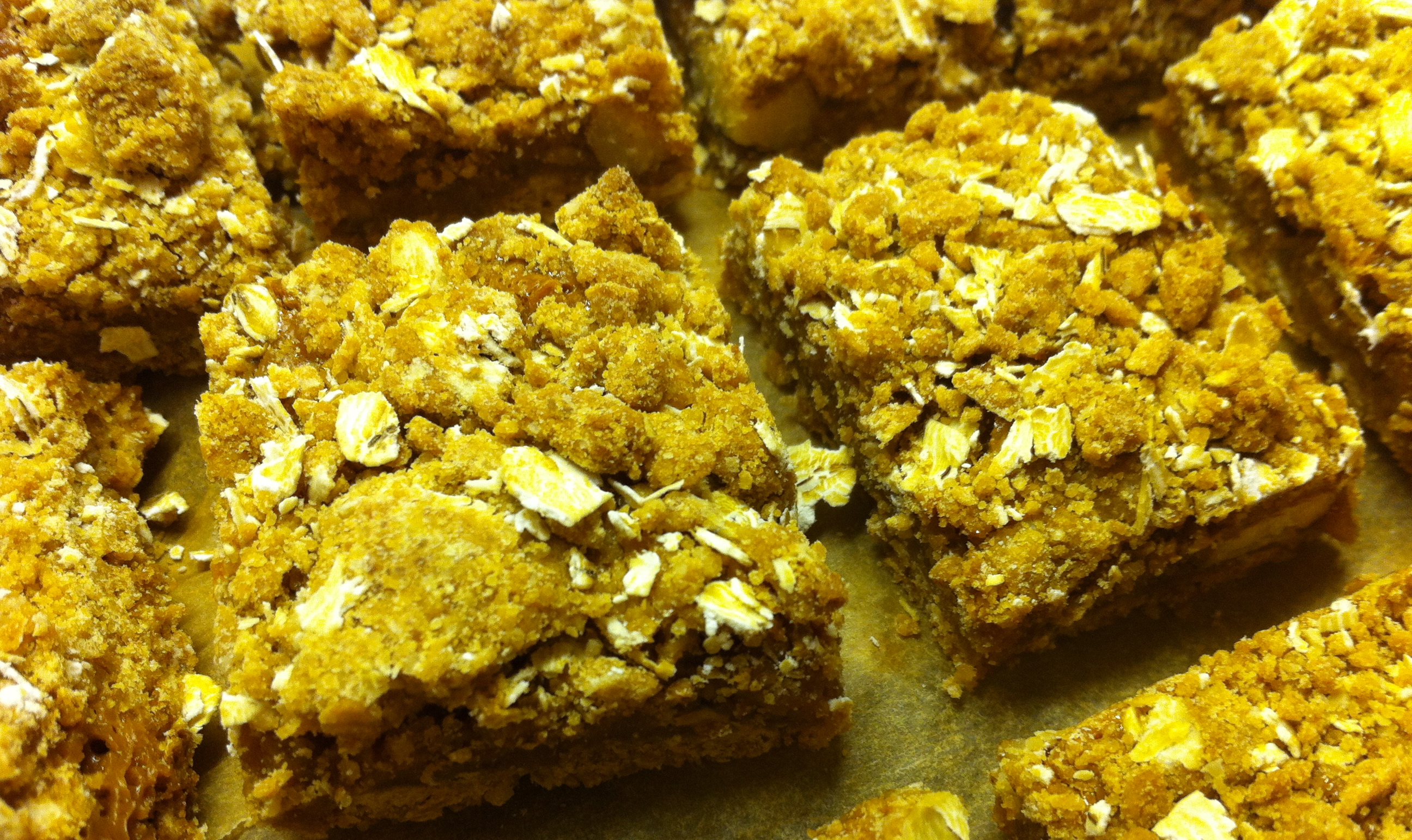 Mrs J has the solution for you, in the form of the recipe for the crumbly caramel squares that Mrs B helped her make today.