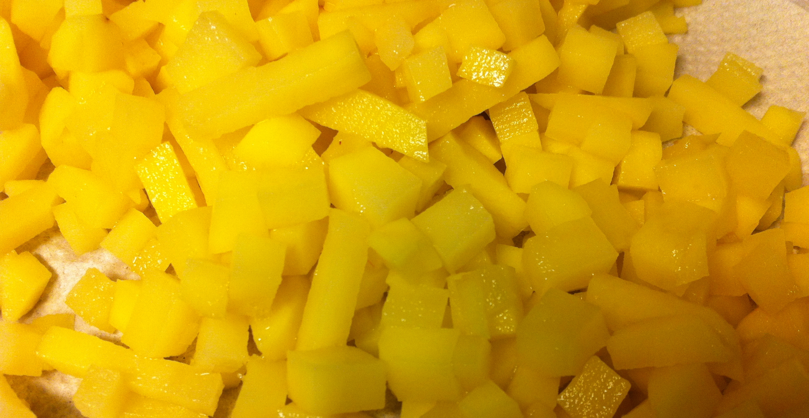 First, preheat the oven (200°C) while making the filling. Peel and cut two potatoes into small cubes.