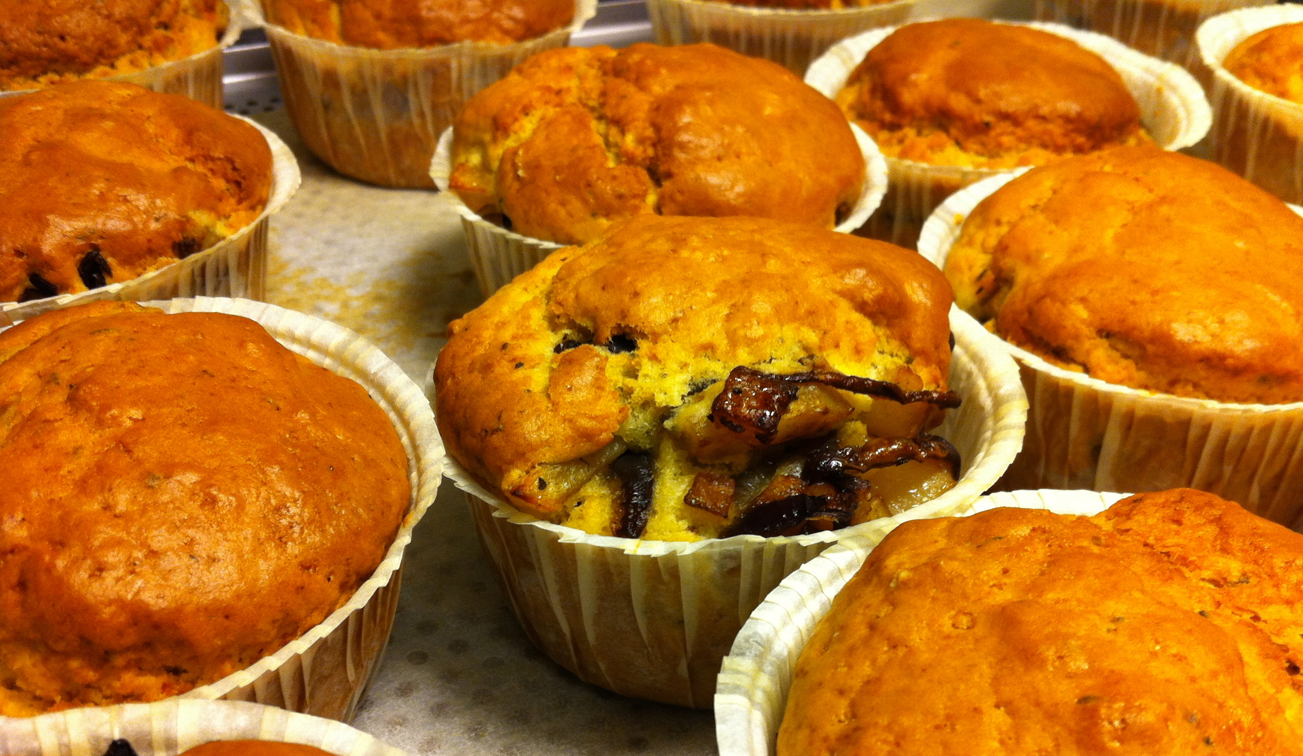 Mrs J already freestyle-baked these muffin-buns with thyme and a savory potato and red onion filling.