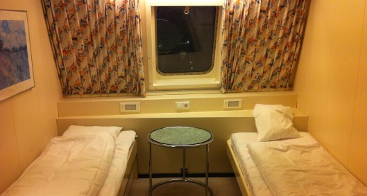 Shabby-chic compartment! There’s a picture on the wall though. May be a touch too much.