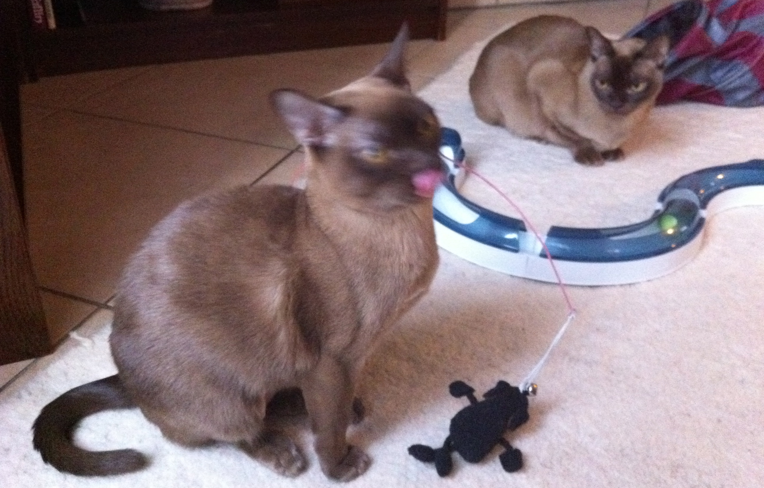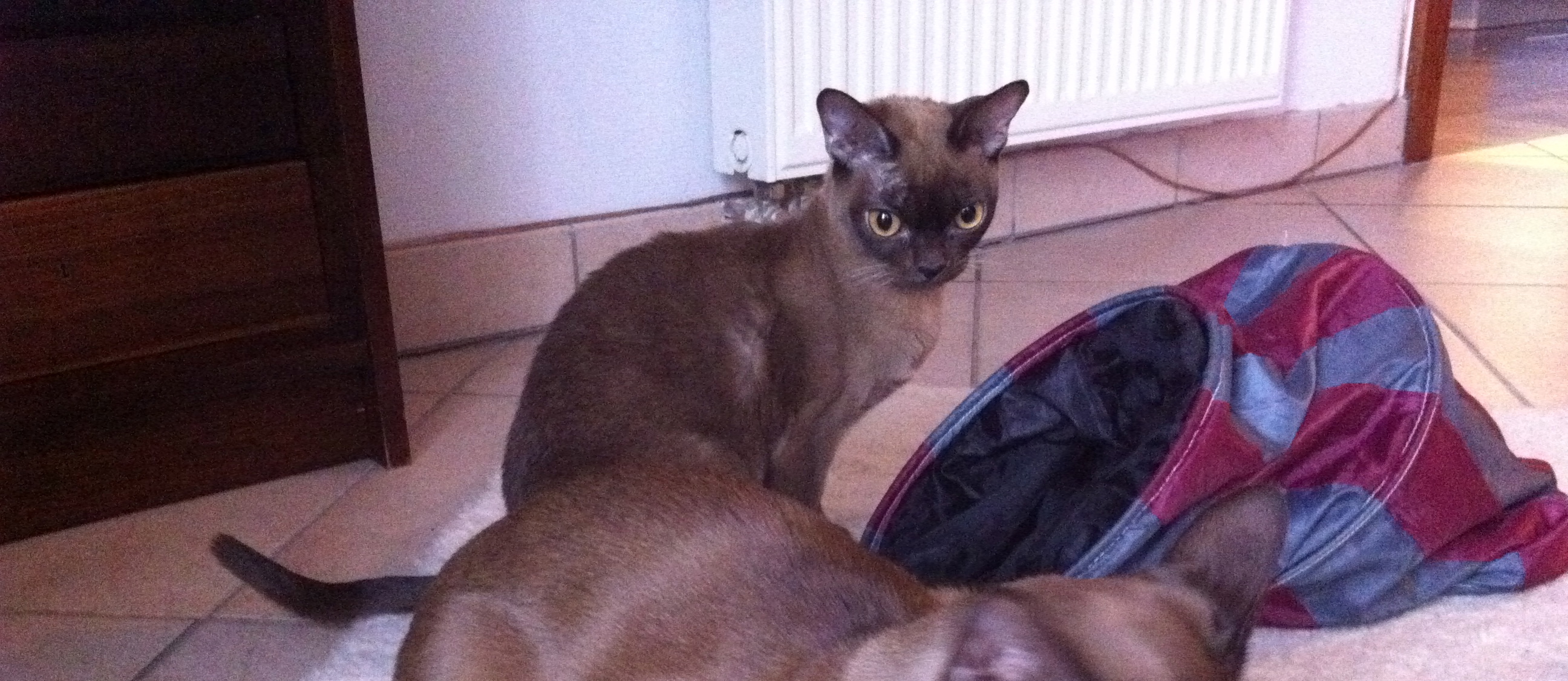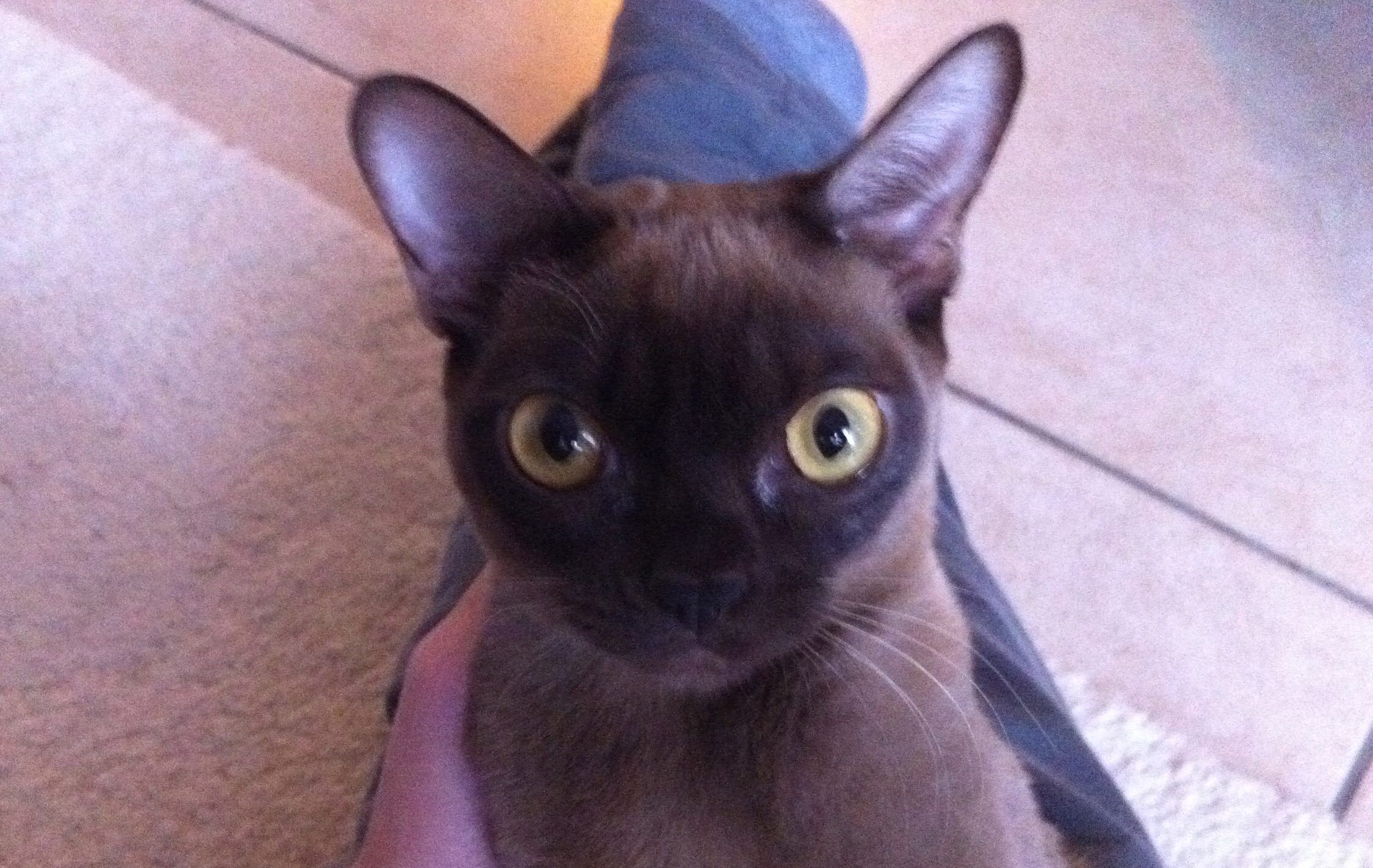 This is why she’s displeased. Well, that plus the fact that Mrs J has her pinned down to take this photo.