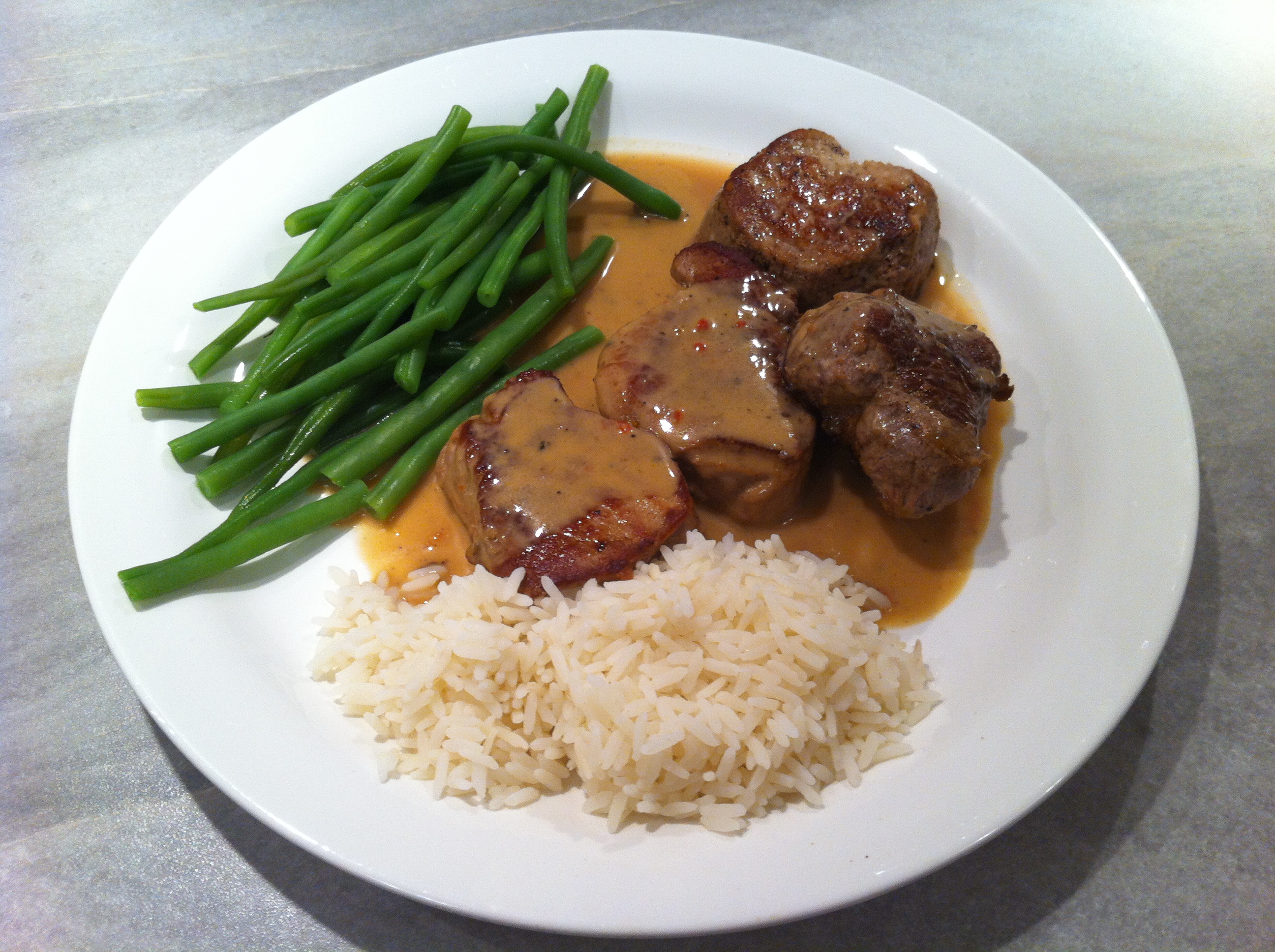 Mrs J got her greedy little hands on some pork tenderloin. About 500g for this recipe. No piracy was necessary, it was on sale in the local shop. Mrs J would imagine pirates cook this with wild pig tenderloin, after having caught said pig on some desert island. Maybe.