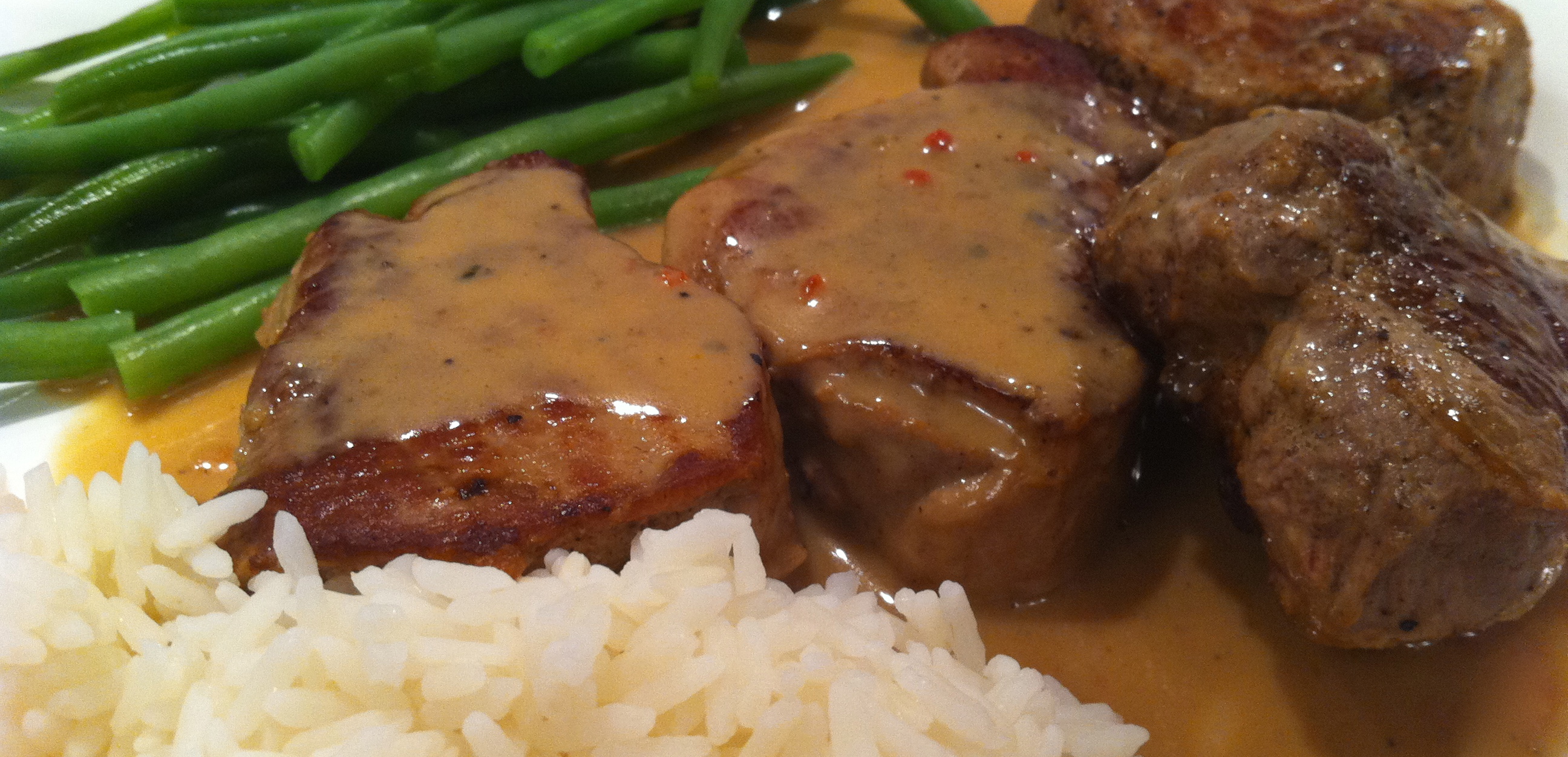 Also add the pork medallions back in the pan. Let the pork cook through on very low heat.