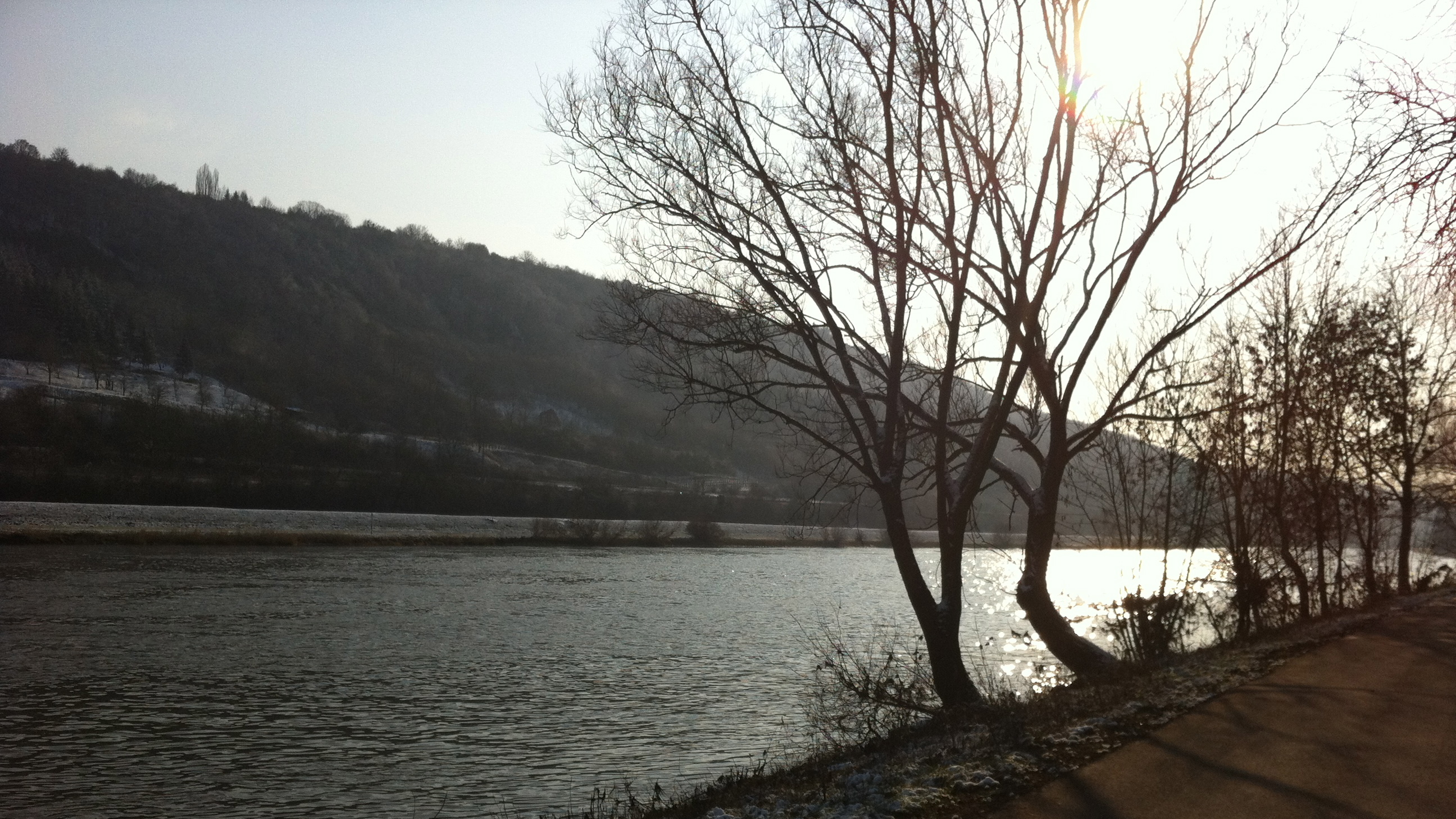 Cold and lovely walk along the river. The sun is still really low, even in the middle of the day. Mrs J forgot to bring a hanky and (of course) her shades.