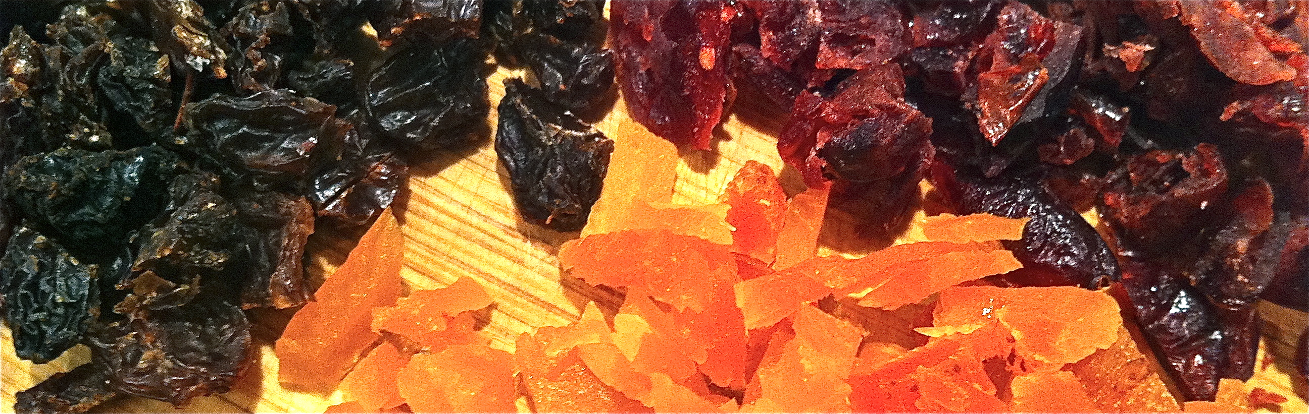 Then add chicken stock, enough to cover the rice. Also add a couple of handfuls of whatever you have around in terms of dried fruit. In this case, Mrs J added some chopped raisins, dried apricots and dried cranberries.