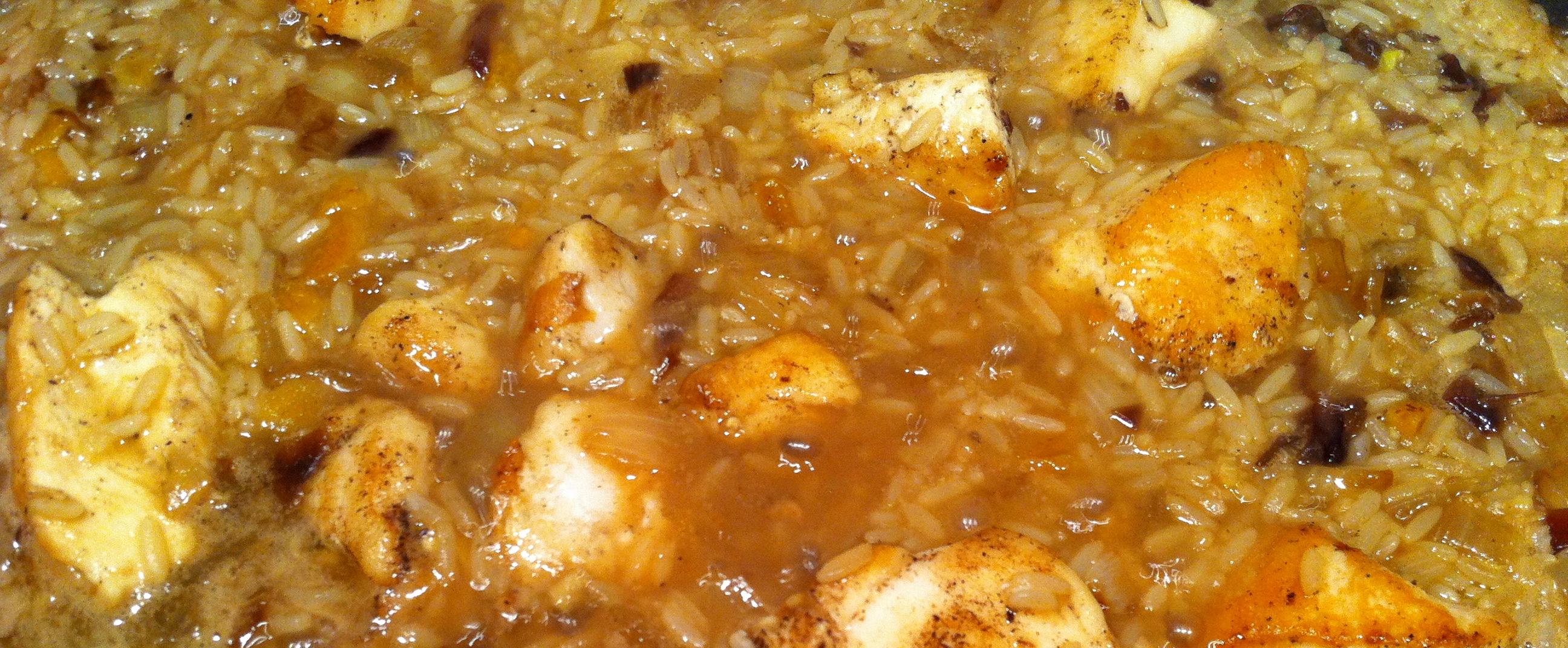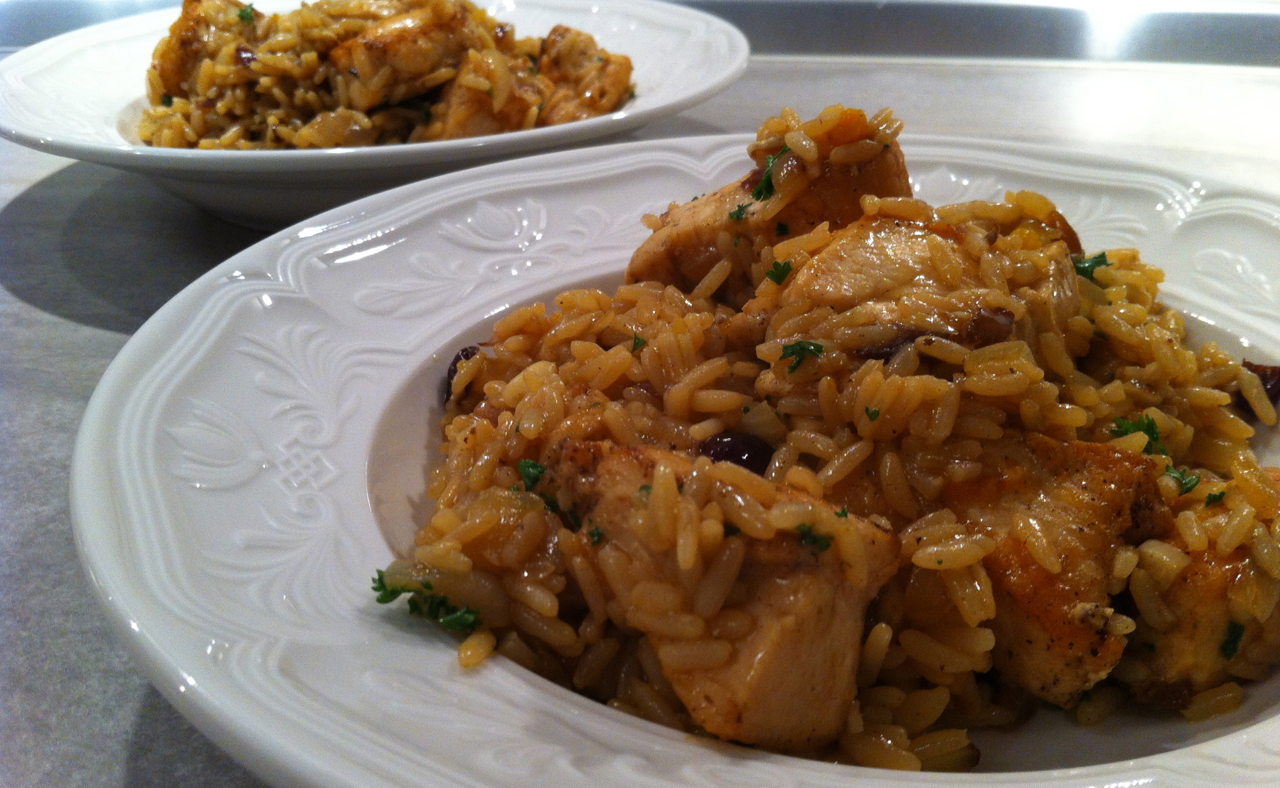 Keep adding stock (or water, if you used a double strong stock to begin with) while the rice cooks if it looks like it’s too dry. Otherwise in terms of quantities, Mrs J cooked 400g of chicken breast with 1 large yellow onion and one monster sized clove of garlic for 2.5 dl of dried long grain rice. But really, you use as much or as little as you like.