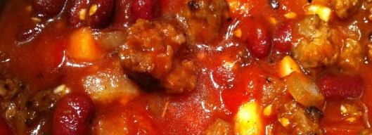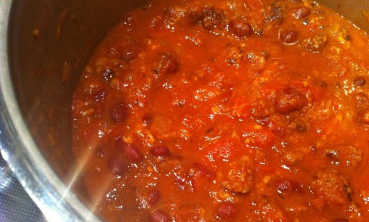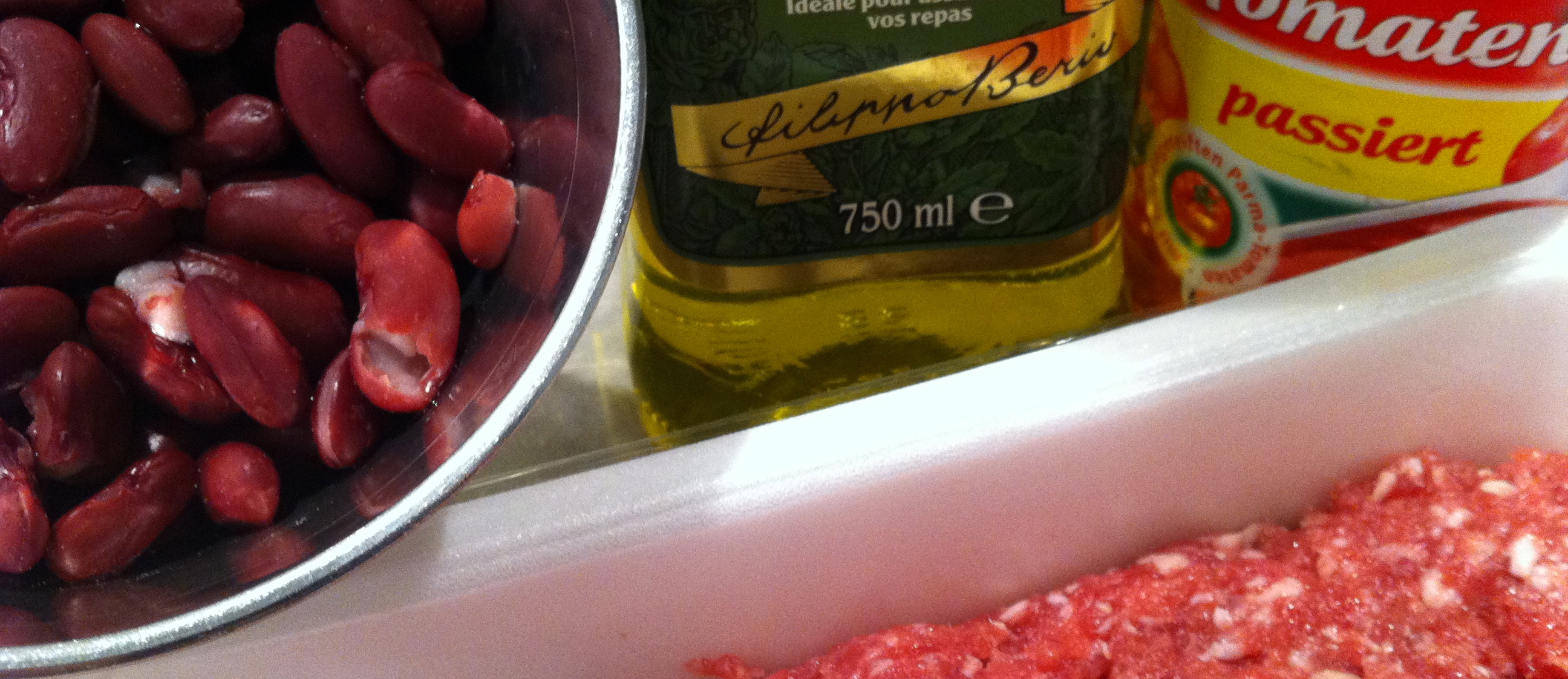 banana, cayenne, chili, garlic, going bananas, low heat, minced beef, minced pork, red beans, slow, tomatoes