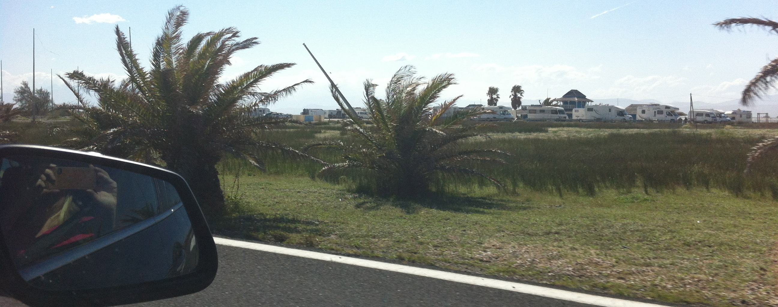 If you didn’t believe Mrs J before about taking all these pictures from a moving car, check the bottom left corner of the following picture for the proof – she inadvertently captured herself in the mirror while aiming for some palm trees…