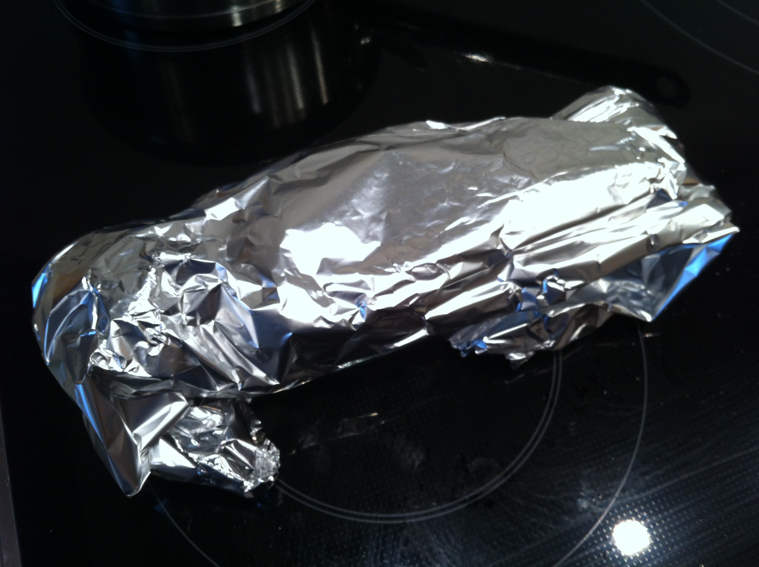 Finish the meat in the same pan in the oven until cooked to taste (should be about 10 minutes). Then roll the pork up in aluminum foil while you finish off the sauce and your choice of sides.