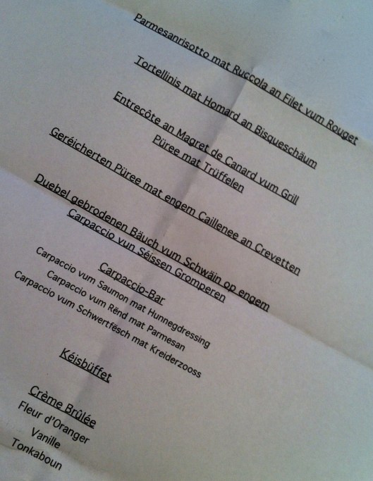 On a … err … vaguely unrelated note, there still hasn’t been much cooking going on in Mrs J’s kitchen. But then there doesn’t have to be when the evening is warm and there’s a village party on and you can just walk around the corner and sample this menu: