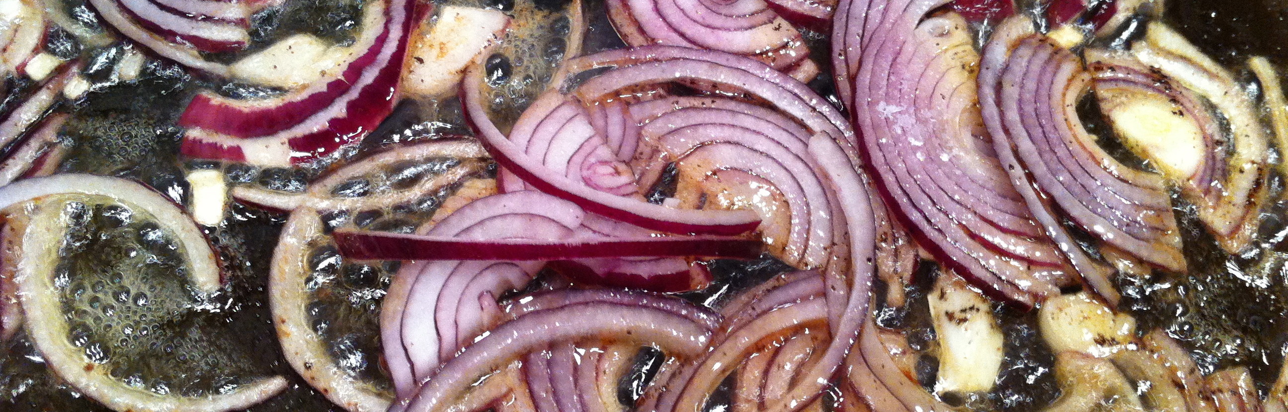 Heat a pan with some butter and oil. When the butter stops bubbling add the onions to brown.