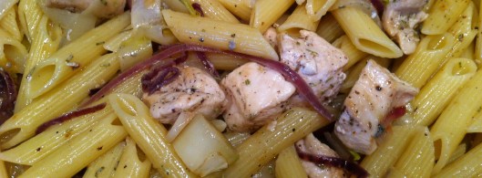 Bring some water to the boil and cook your pasta. Mrs J is using penne, but gnocchi style or farfalle pasta would be great too. 2-3 handfuls per person and one for the pot. When done, season with olive oil, salt and pepper.
