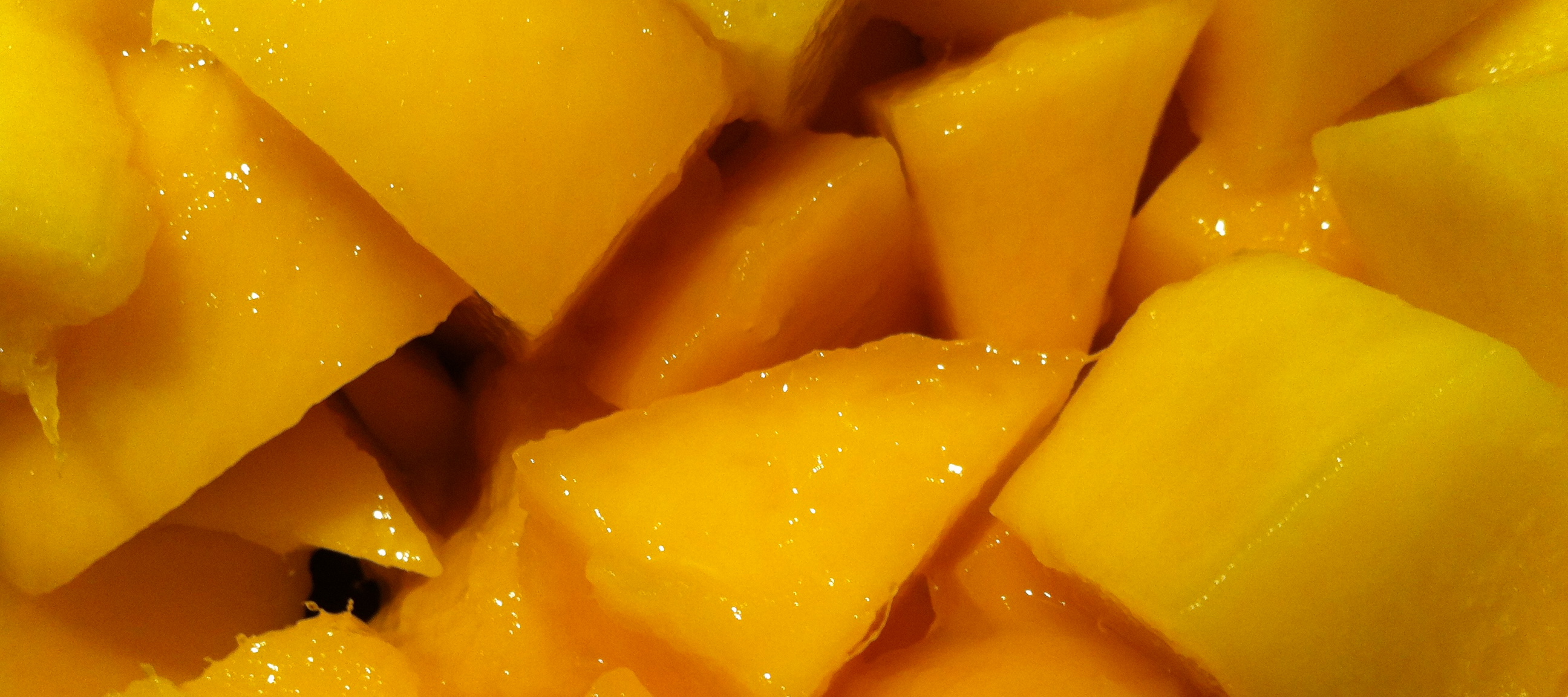 Press another lime into a separate bowl. Dice one and a half ripe mangoes and coat with the lime juice. Keep this to the side.