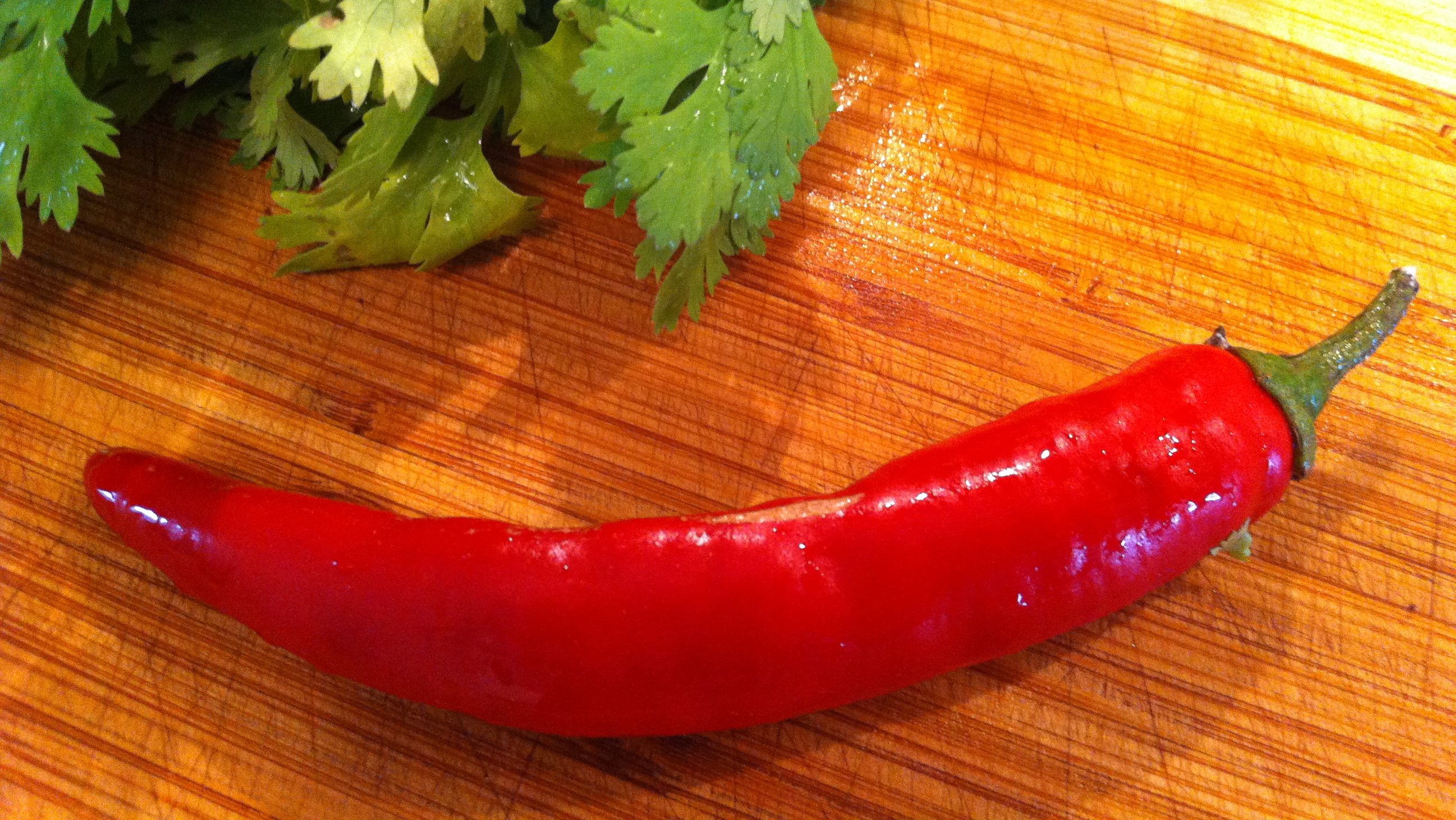 Also, finely chop one chili fruit and about 2 1/2 dl of fresh coriander.