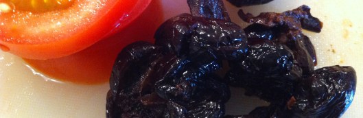 Slice 3 medium sized tomatoes and remove the stone from about 20 black Kalamata olives.