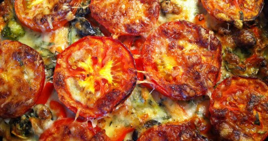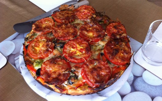 Pour the egg mix over everything and finish with the sliced tomatoes and 1/2 dl of Gruyère cheese. Cook at 200°C for another 40-45 minutes. Let the pie sit for at least 10 minutes before you try to cut it.