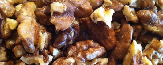 Roughly chop (or crush) 125g of walnuts. Roast them in a hot pan for a couple of minutes. (Be careful not to burn them, that sort of defeats the purpose…)
