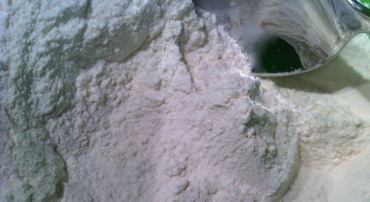 In a separate bowl, mix 120g of flour with 1 tsp of baking powder and two tsp of vanilla sugar.