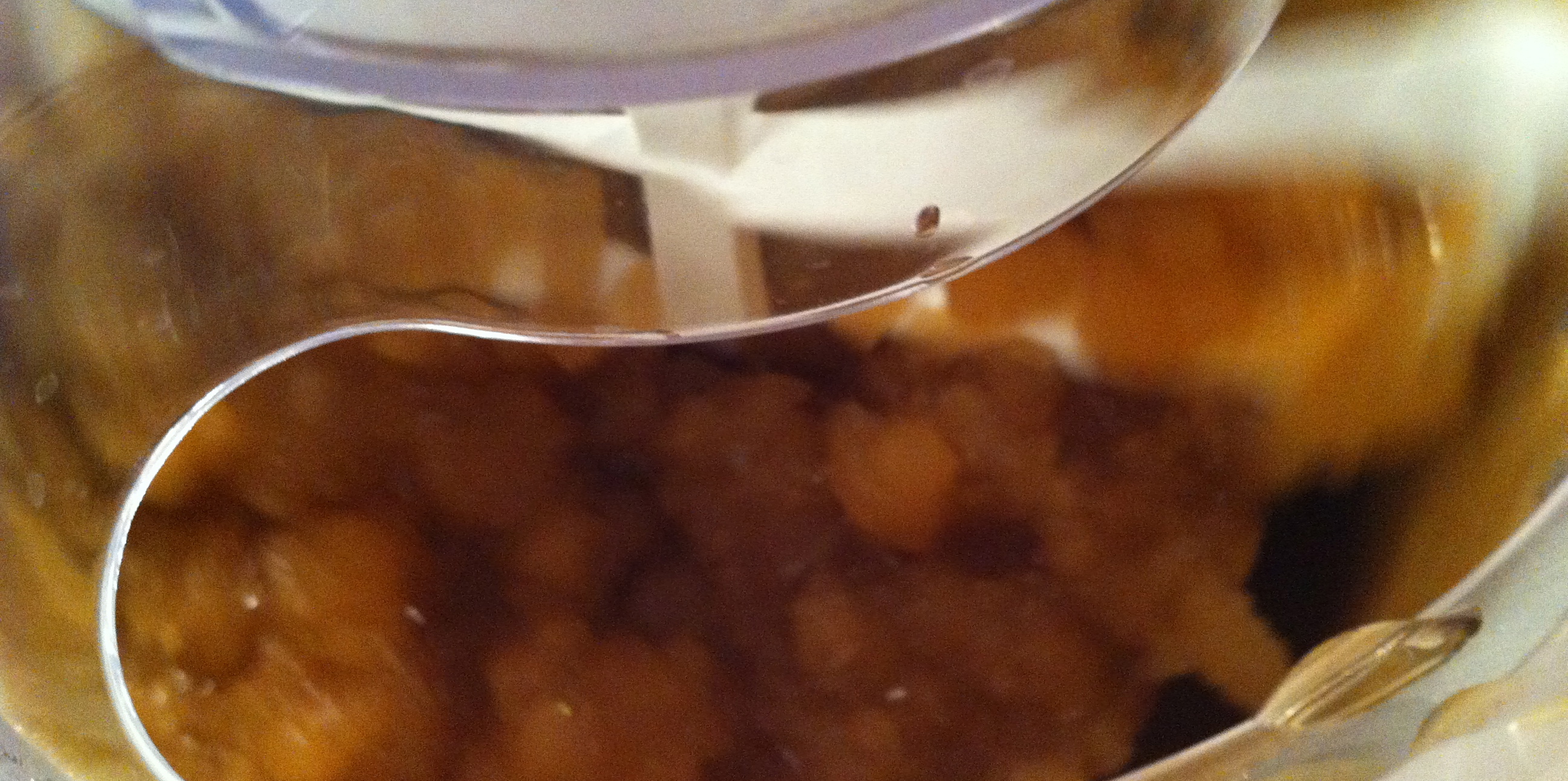 Remove the teabags and add 50g of honey and 100g of white sugar syrup or caster sugar. For the sake of full disclosure, please note that the original recipe calls for 150g of sugar. The very thought of this made Mrs J’s hair stand on end. So she called it quits at 100g and then just added another 10g of sweetener in a (possibly futile) attempt to reduce the calorie count. And she thinks it’s possible to reduce the sugar even further.